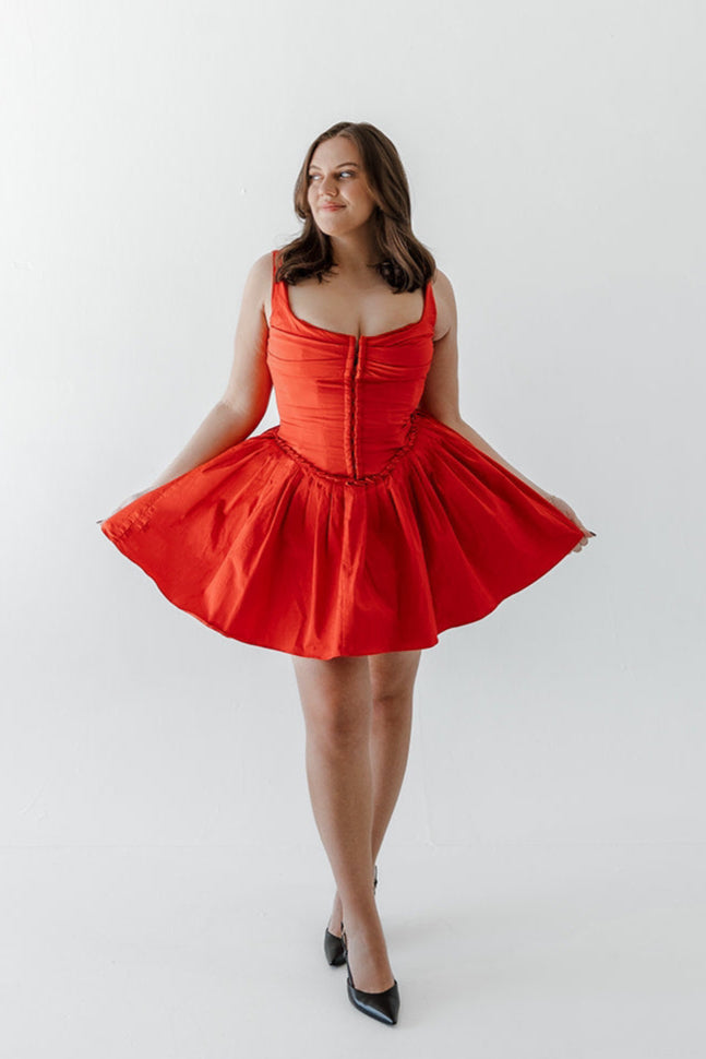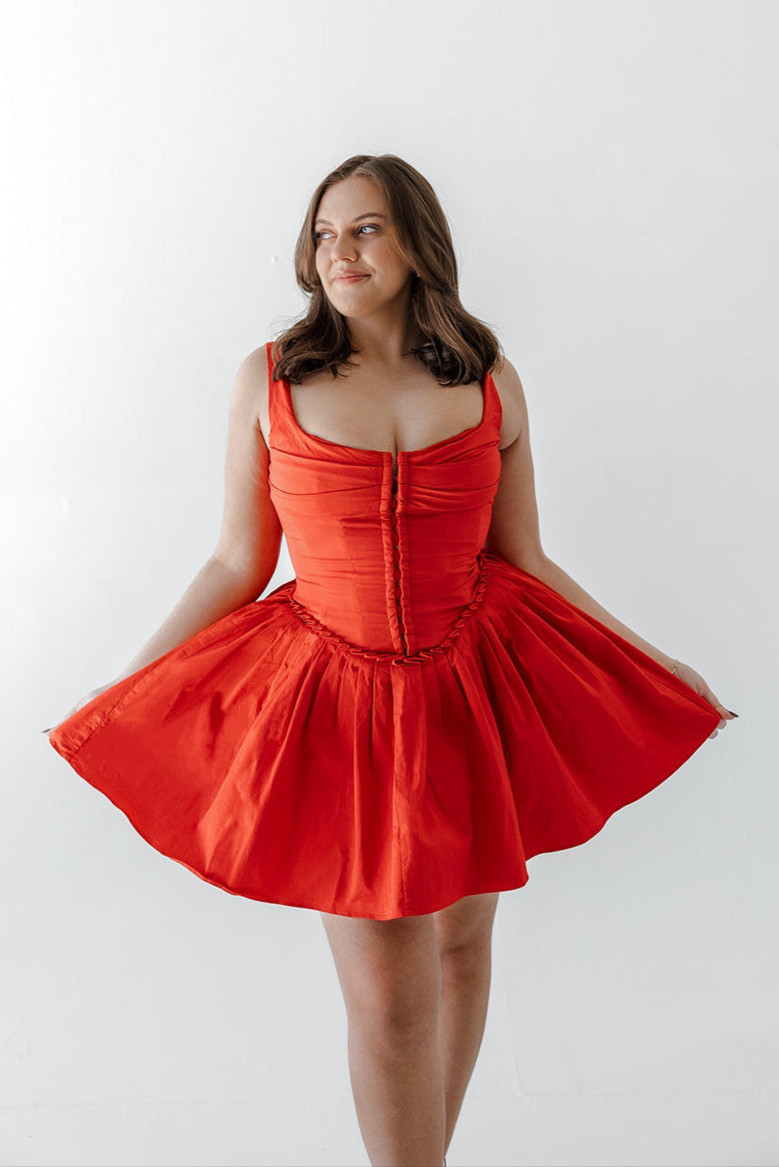 Make a statement with Syrina Bodice Mini Flare Dress. Designed to emphasize the waistline, it features a structured bodice with visible boning and a flared skirt for a playful yet seductive silhouette. The vibrant red tone is perfect for date nights, cocktail parties, or any event where you want to stand out.