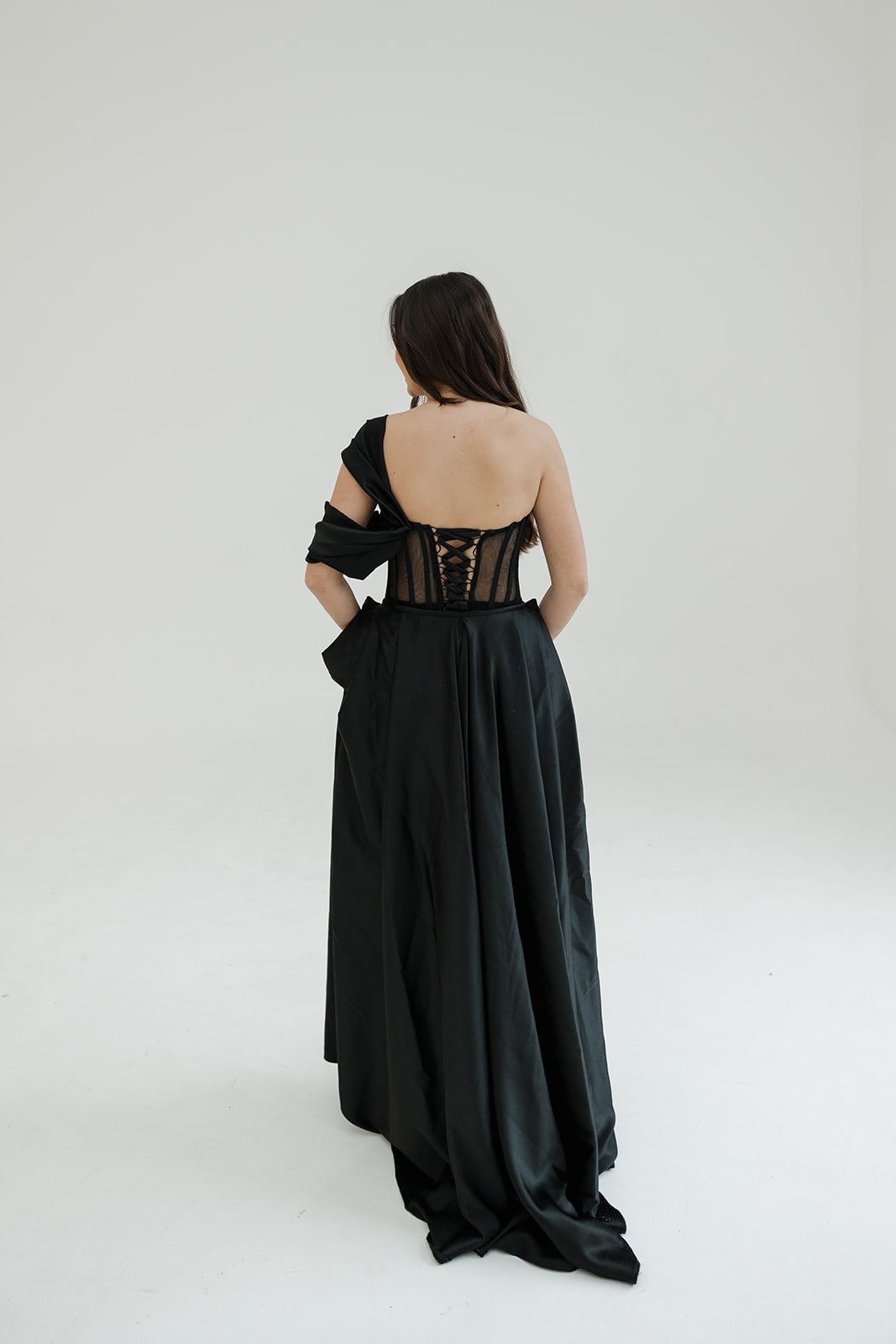 The Jasmine Elegance Sheer Black Gown combines modern drama with timeless allure. Featuring sheer panels, a flowing black removable train, and intricate detailing, this gown is designed to captivate. Its plunging neckline and high slit add boldness to this sophisticated piece.