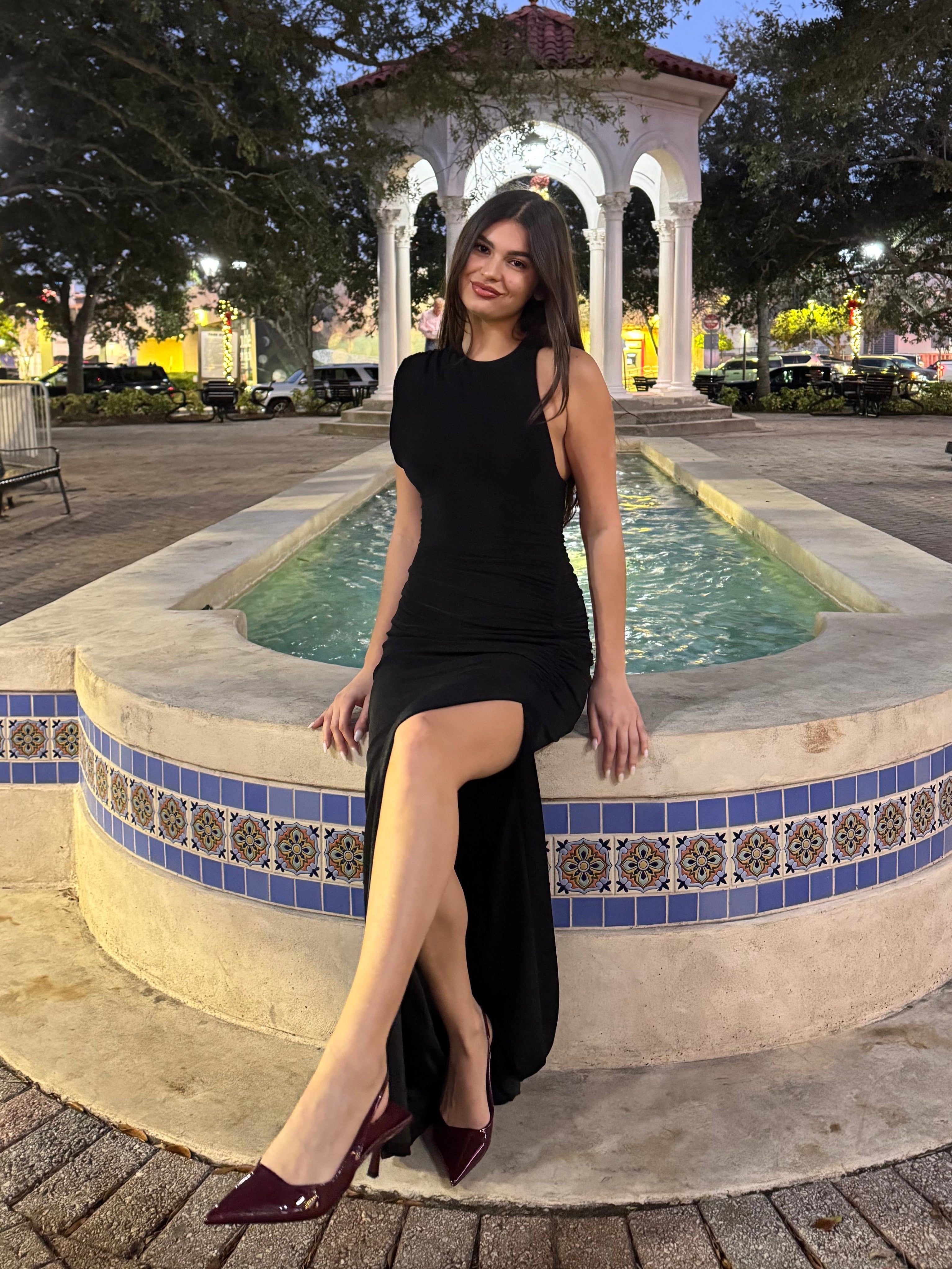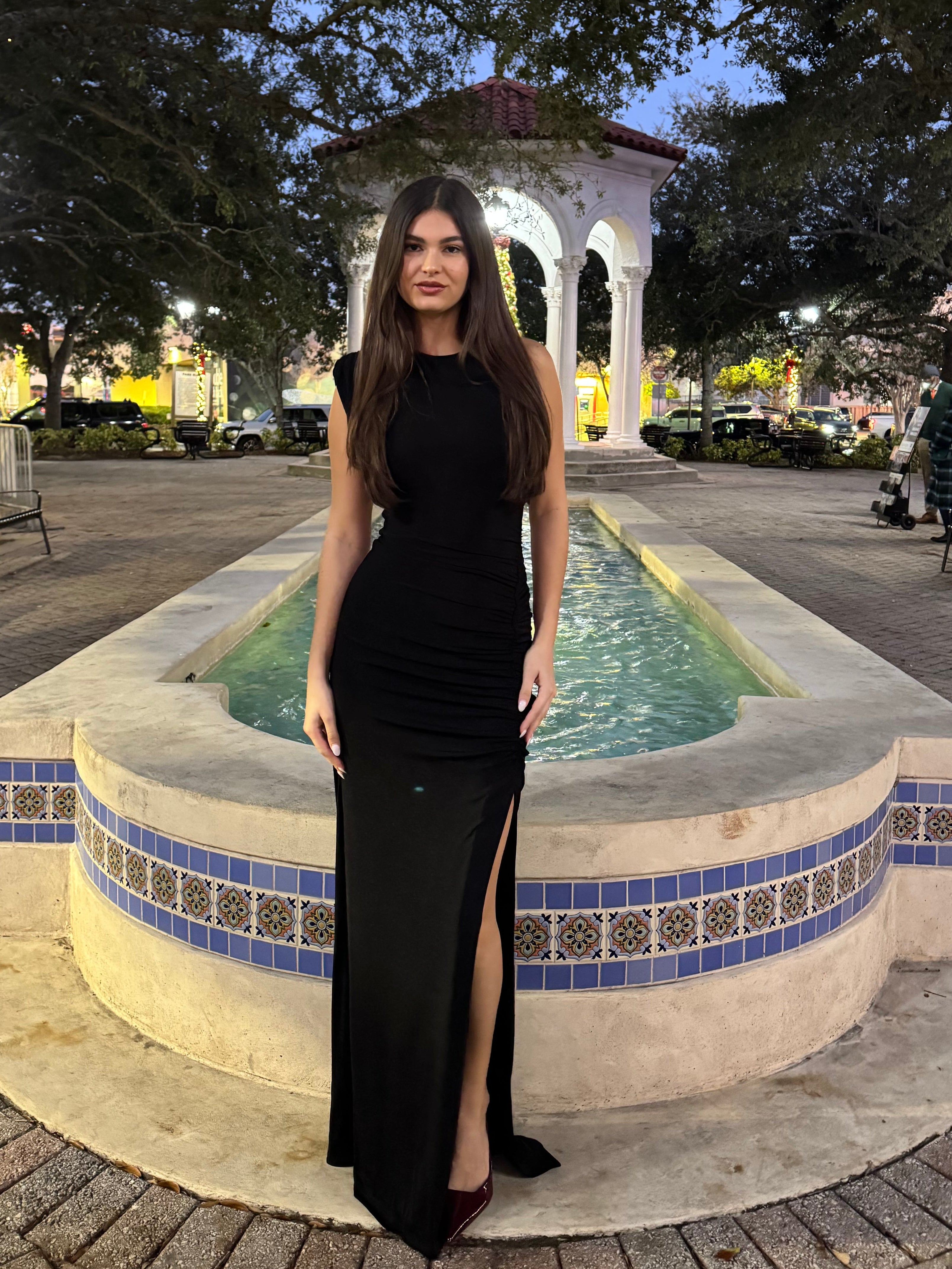 Style With: Pair with pointed-toe heels, a structured clutch, and minimal gold or silver jewelry to let the gown’s simplicity and silhouette shine.